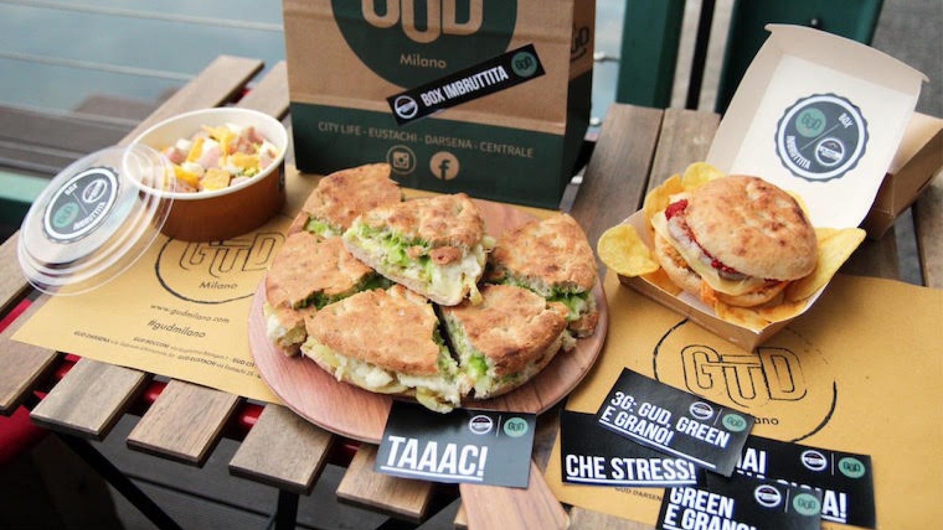 Informazioni di servizio: consegna tutti i giorni dalle 12 alle 15 e dalle 18 alle 23 (GūD CityLife, Darsena e Gud Stazione Centrale). Ordinare è super easy, basta andare su Deliveroo e taac, la box arriverà a casa vostra. Del resto oh, bisogna rispettare le regole del DF – Delivery e Fatturato. E per farvi sorridere, all’interno della box vi lasciamo anche una sorpresa da appiccicare dove volete. Cuntent?