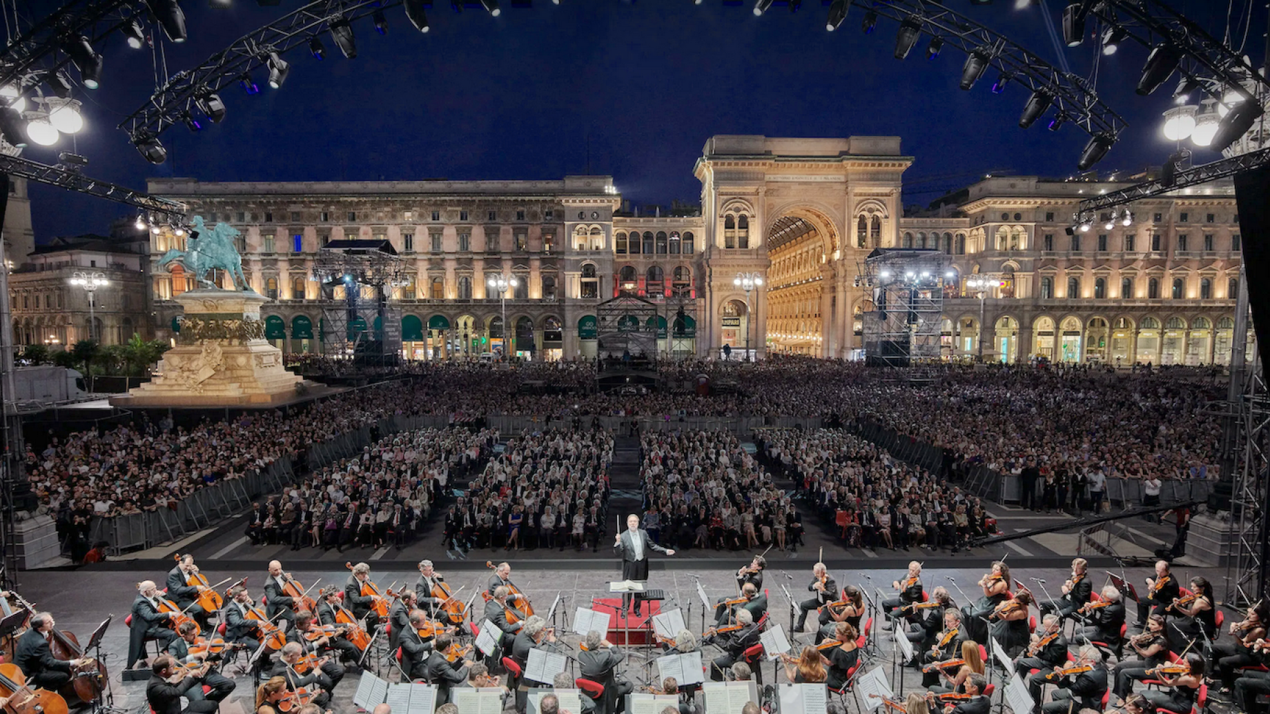 A dirigere l’orchestra per la dodicesima edizione del concerto, il Maestro Riccardo Chailly, direttore musicale, accompagnato da Emmanuel Tjeknavorian, violinista di fama mondiale che da quest’anno si è stabilito a Milano alla guida dell’Orchestra Verdi. “È l’attrazione reciproca tra musica sinfonica e grande cinema a condurre il programma della serata. Emmanuel Tjeknavorian è solista al violino per la suite dal balletto Le boeuf sur le toit op. 58 di Darius Milhaud, trionfo di ritmi e colori carnevaleschi su temi popolari brasiliani, che reca ‘Fantasia cinematografica su motivi sudamericani‘ nel sottotitolo e che Milhaud avrebbe voluto come colonna sonora di un film di Charlie Chaplin” si legge sul sito, e noi riportiamo perché è meglio non scrivere cazzate.