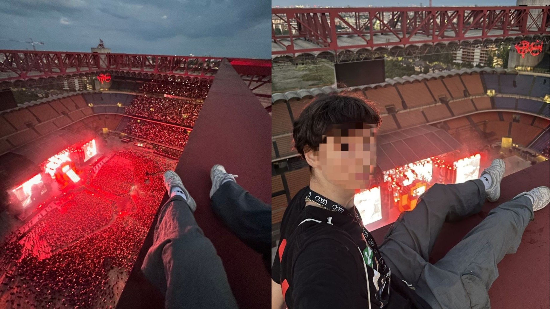 Ma questa non è stata solo un’altra capatina nel mondo vertiginoso dell’urban climbing. No, questa è stata una bravata bella e buona in diretta, trasmessa in tempo reale attraverso il suo profilo Instagram, da quasi 92mila followers. Tra stories e post, Dedelate ha documentato ogni singolo istante della sua scalata verso il tetto del Meazza. In alcuni video postati sui suoi social, Dedelate sfida l’equilibrio, correndo easy lungo una trave dello stadio senza la minima protezione. Nel successivo, con tanto di selfie, lo vediamo godersi l’intero concerto. Ma la pièce de résistance è uno scatto che lo mostra, rilassato come se fosse sul divano di casa, con le gambe penzolanti sopra lo stadio, mentre Sfera Ebbasta canta la sua ultima hit.