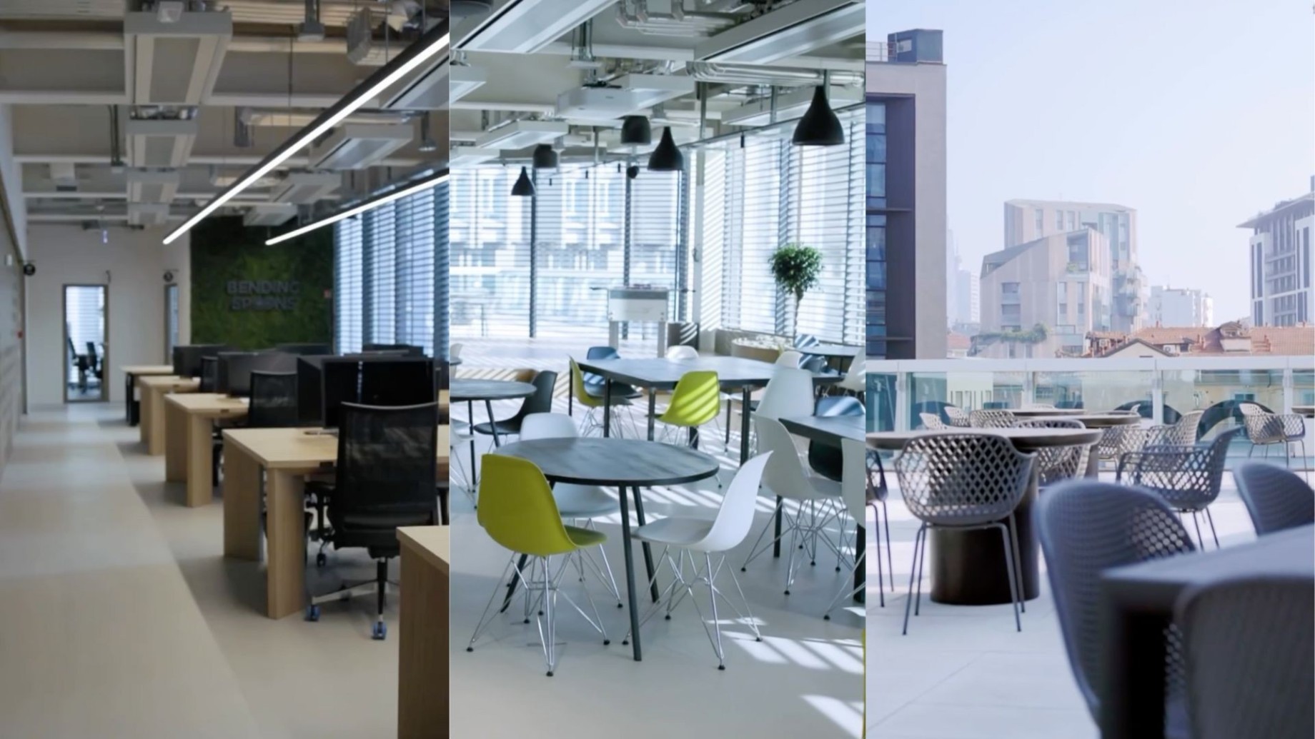Più che uffici, una comunità: i dipendenti si fanno chiamare “Spooners” e possono scegliere se lavorare in sede (che in effetti è una figata) o da remoto. Nei contratti ci sono pure benefit come un budget di mille euro all’anno per uscite di svago con i colleghi, lab di yoga, masterclass sulla birra, cineforum e un botto di altre attività.