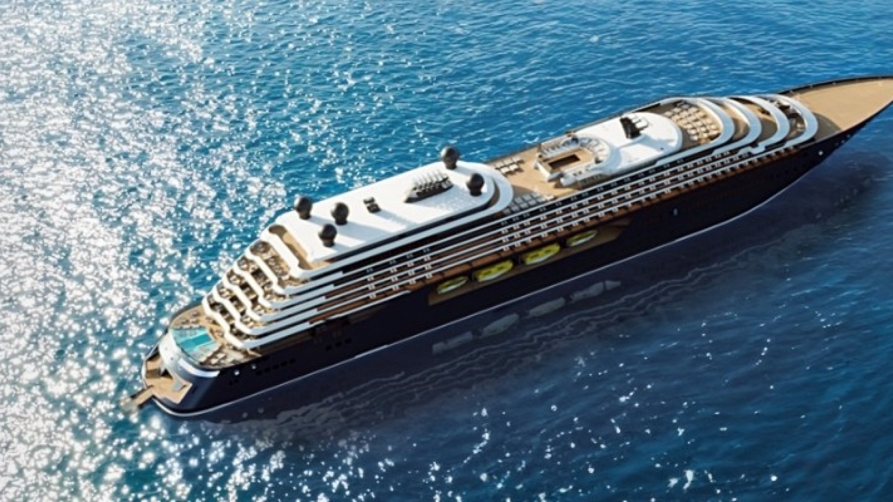 Il super yacht è appena stato varato e si presenta come un “santuario di eleganza, scoperta e delizia“. Una definizione all’insegna dell’understatement. La più grande della sua flotta, questa nave è lunga 242 metri, ha dieci ponti, oltre 220 suite tutte con terrazze private e vetrate, cinque ristoranti gourmet, 7 lounge bar, una cantina che manco in Monferrato, Spa, palestra e boutique per chi ha voglia di shopping. Naturalmente non mancano le piscine (una si chiama modestamente Infinity…) ma c’è anche una spiaggia privata! In mezzo al mare, capite?!