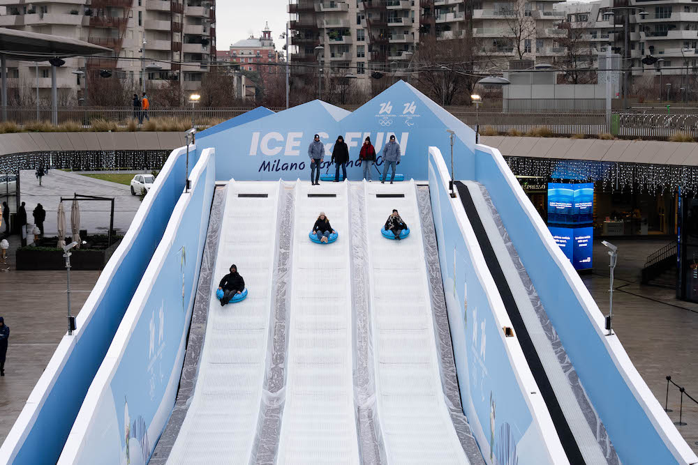 Un’installazione pubblica dedicata a cento anni di sport olimpici su ghiaccio, ospitata nella stazione Portello (Linea M5). Belli comodi.