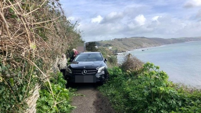 Si incastra con la Mercedes in un sentiero in Cornovaglia: molla l’auto lì e se ne va